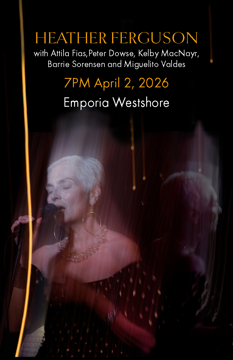Heather Ferguson brings her smouldering vocals to the Emporia stage with original songs from her acclaimed album “FOUND,” and reimagined jazz standards. Joined by some of Victoria’s finest musicians she showcases intimate, story-rich songs that feel both sophisticated and warmly inviting.