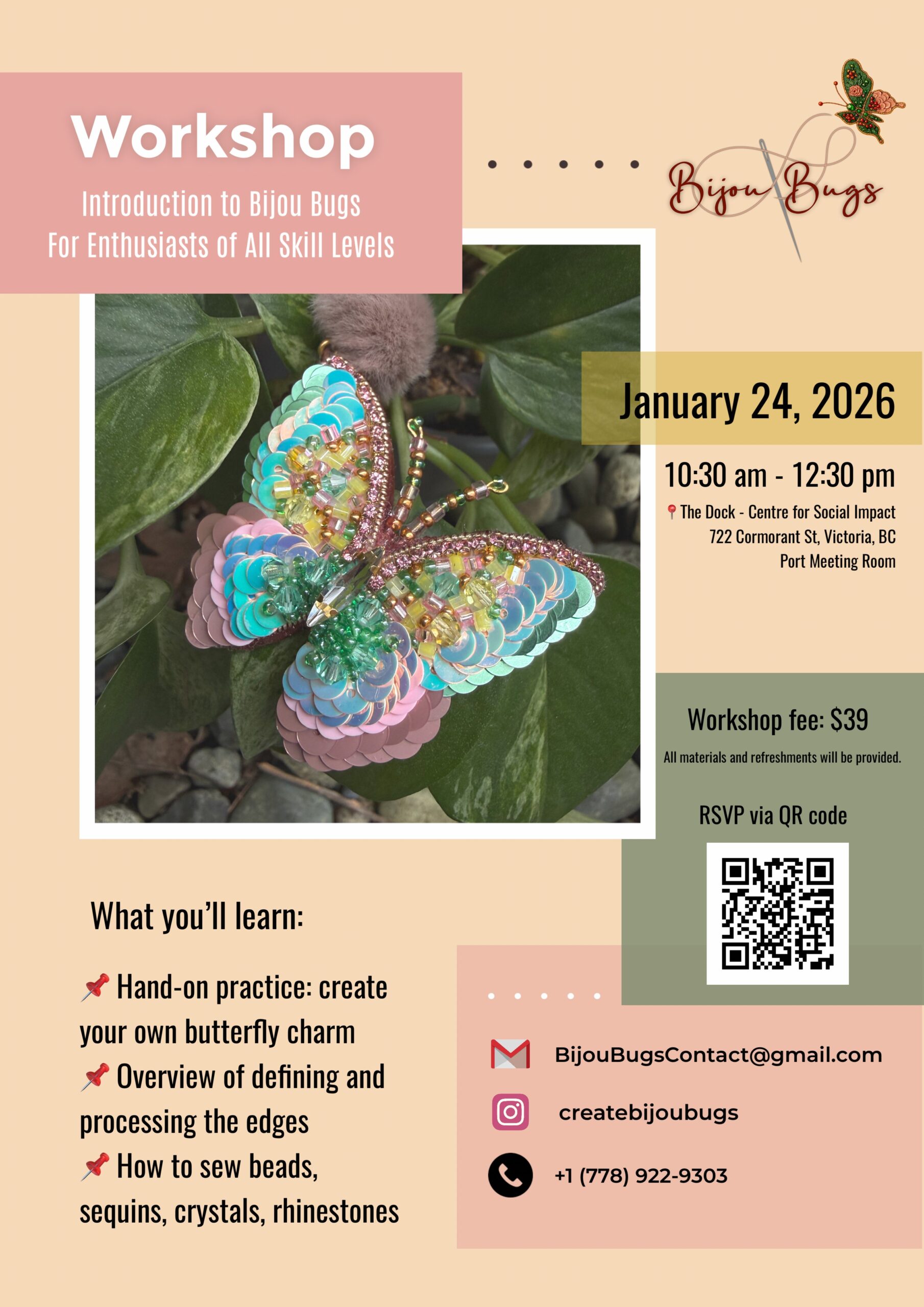 Join a hands-on Bijou Bugs beading workshop with Nafiseh Rashidianfar.