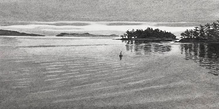 After several years of sharing her work internationally, Charsley returned to her hometown of Vancouver, where she rekindled her love of nature. According to her artist profile, “for Liz, who sings with the choir Ensemble Laude, a walk in the woods or along a beach can deliver a visual fermata, caused by light glancing through the trees or bouncing off the water. Her charcoal drawings, many of them rich in detail, capture these moments, preserving them in the dreamy stillness of soft monochrome.”